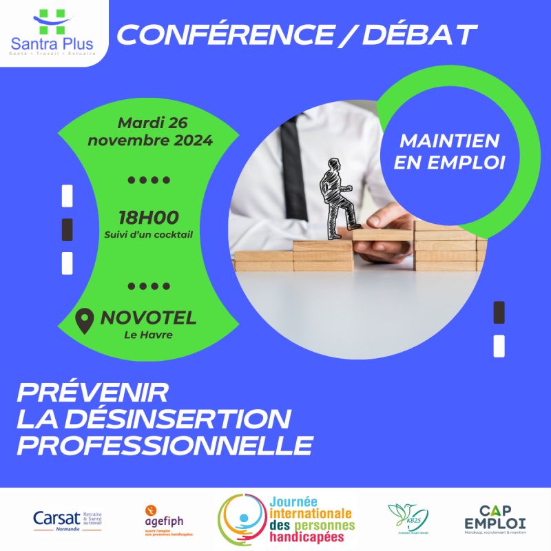 Le 17 septembre 2024 Soirée conférence / débat Maintien En Emploi Santra Plus organise une soirée conférence / débat sur le thème de la désinsertion professionnelle. Pour en savoir plus et vous incrire, cliquez sur l'image ci-dessous. Â